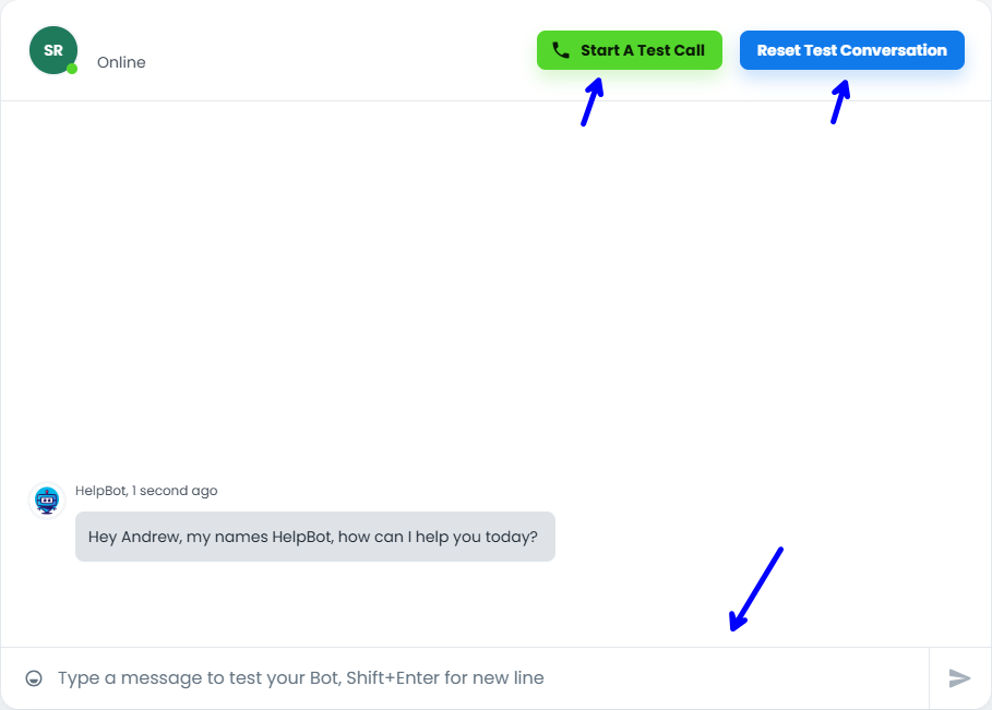 Once you've created your AI Employee, it's vital to test it with a variety of scenarios, using the web chat in the "Edit & Test" tab, or having it call you, by clicking "Start A Test Call".