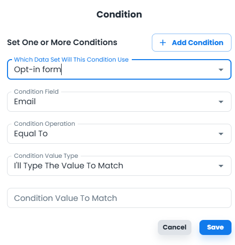 Drag that onto the canvas and scroll to the bottom of the "Which Dataset Will This Condition Use".