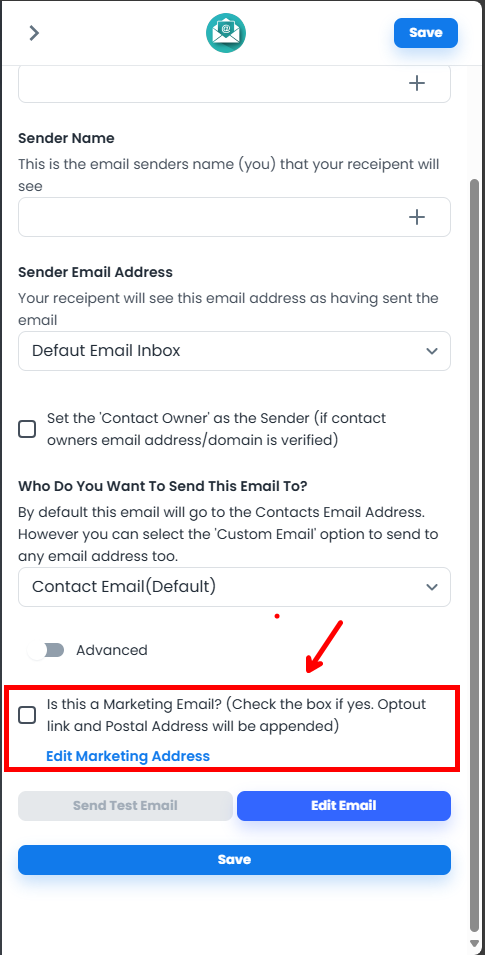 At the bottom of the sidebar, you'll see "Is this a marketing email?" Tick the box and the unsubscribe link will automatically be added.