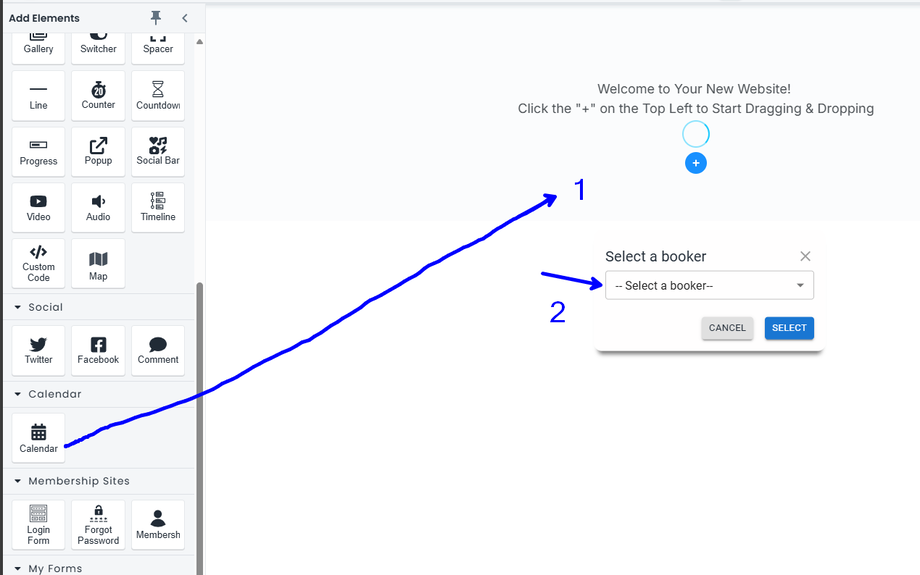If you want to embed your calendar into the site builder, just go to the site builder and in the list of elements, you'll see "Calendar".