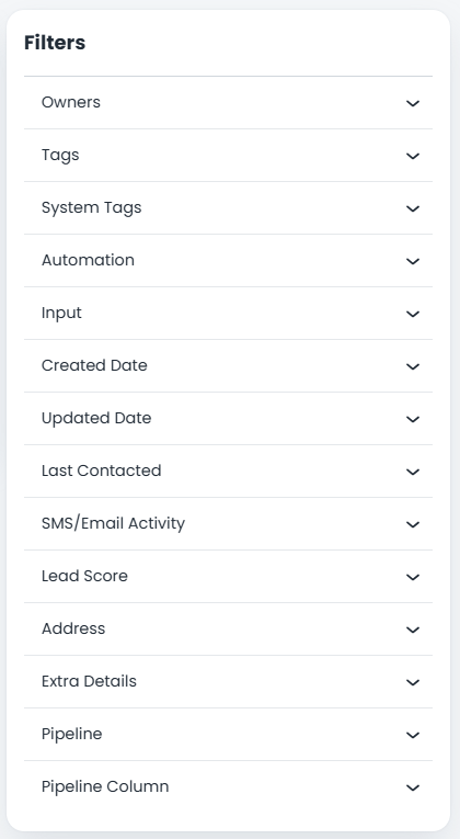 You can filter by most things such as tags, automations, activity, lead scores etc.