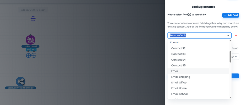 Click and drag the "Lookup Contact" flow step onto the canvas.
