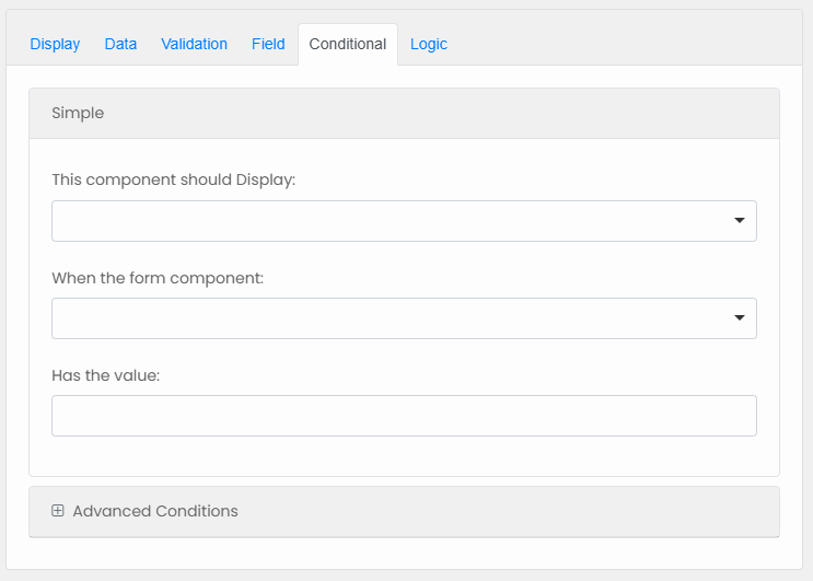 When you create a form, you can use simple conditional logic by hovering your cursor over the field and clicking on the gear icon.
