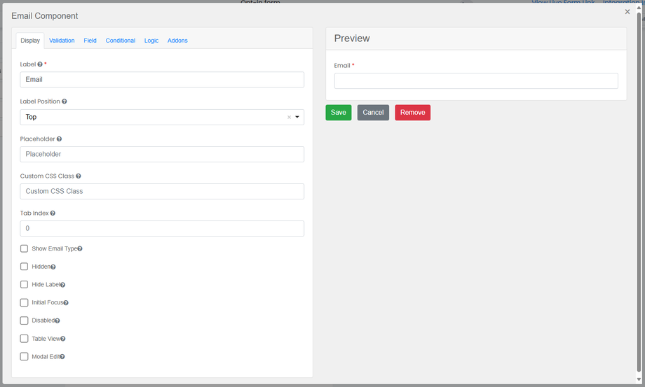 The last tab you might use is "Advanced Logic", which allows you to perform more advanced logic, such as forcing fields to be required or not based on the input of other fields. You can also edit placeholders and labels based on the input of another field or fields, and even apply input masks, css classes and tooltips. This section is really only for advanced users, with the exception of forcing fields to be required, again you can watch a video on this in the walkthrough's/tutorials area.