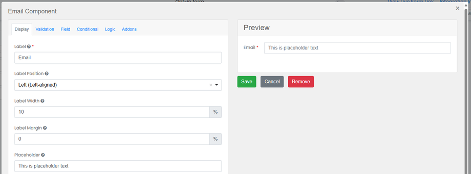 Then under the label options, you have the placeholder text:
